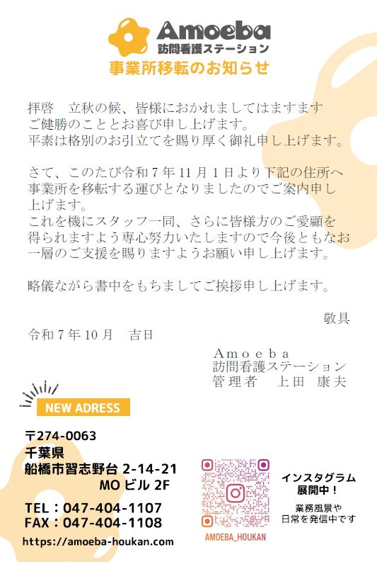 今後ともAmoeba訪問看護ステーションをよろしくお願い申し上げます。